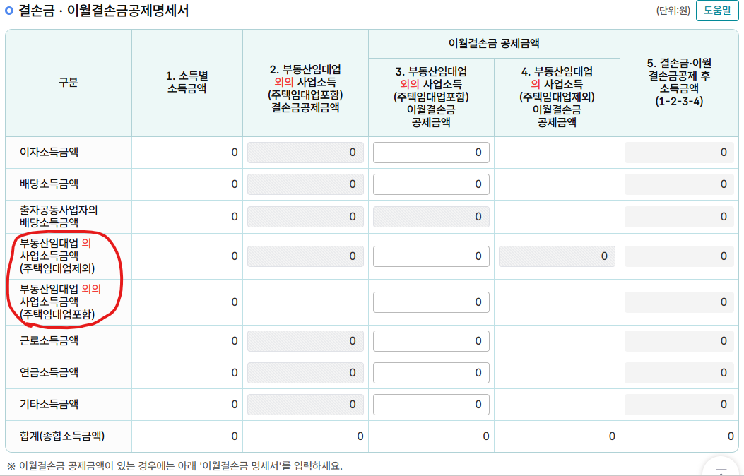 - 부동산 수익 마이너스 시 합산 불가