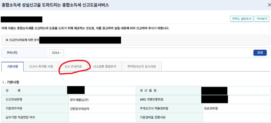 종소세 작성 화면의 상단에 신고도움 서비스를 이용하면 작년 수입 내용을 알수 있습니다.